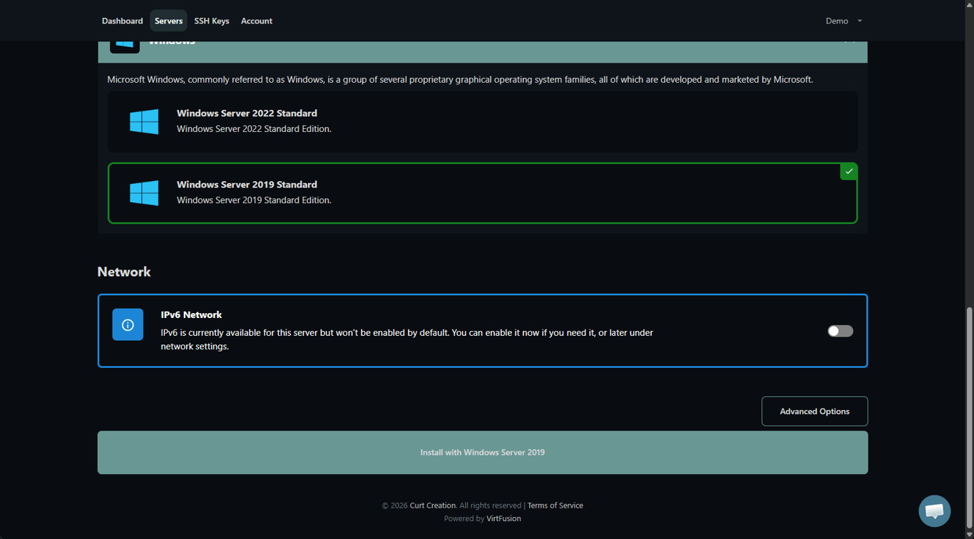 Select the specific version you wish to install (e.g., Windows Server 2019 Standard).