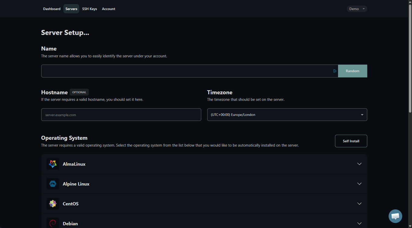 server.yourdomain.com).Timezone: Select your preferred local timezone from the dropdown menu.