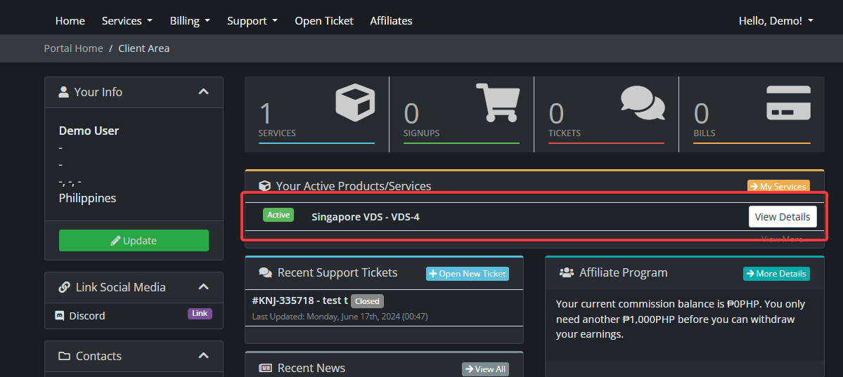 Locate your server (e.g., Singapore VDS - VDS-4).