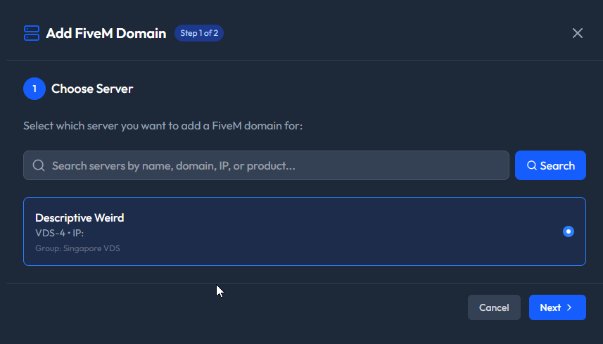 Step 1: Access the FiveM Domains Menu